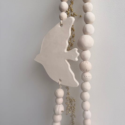 Collier mural en céramique brute, une pièce unique et délicate qui embellira vos murs. Composé de perles blanches et d’une colombe, chaque détail est façonné à la main avec soin. Sa finition blanche et minimaliste s’intègre parfaitement dans tous les intérieurs, apportant une touche de poésie et d’élégance à votre...